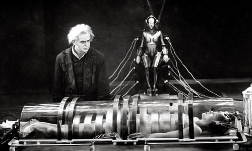 Esa increíble transformación vendrá de la mano de un científico loco, que gracias a su brillante cerebro y a su laboratorio secreto conseguirá convertir a la máquina en algo humano. Rayos de todo tipo inundan la estancia, y van de la cabeza del robot a la cabeza de la chica, uniendo las cualidades de ambos seres… ¿’Frankenstein’, entonces? ‘Metrópolis’.